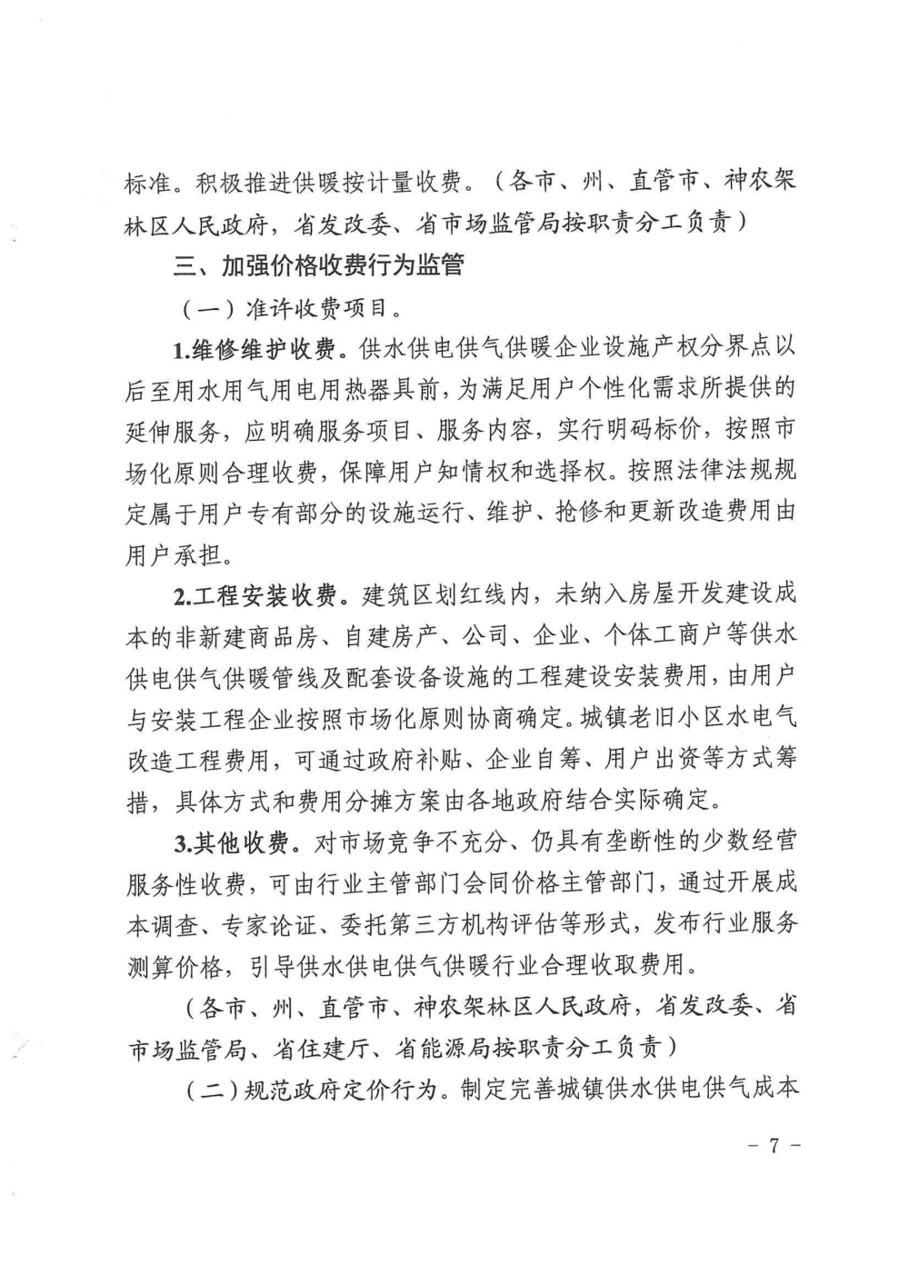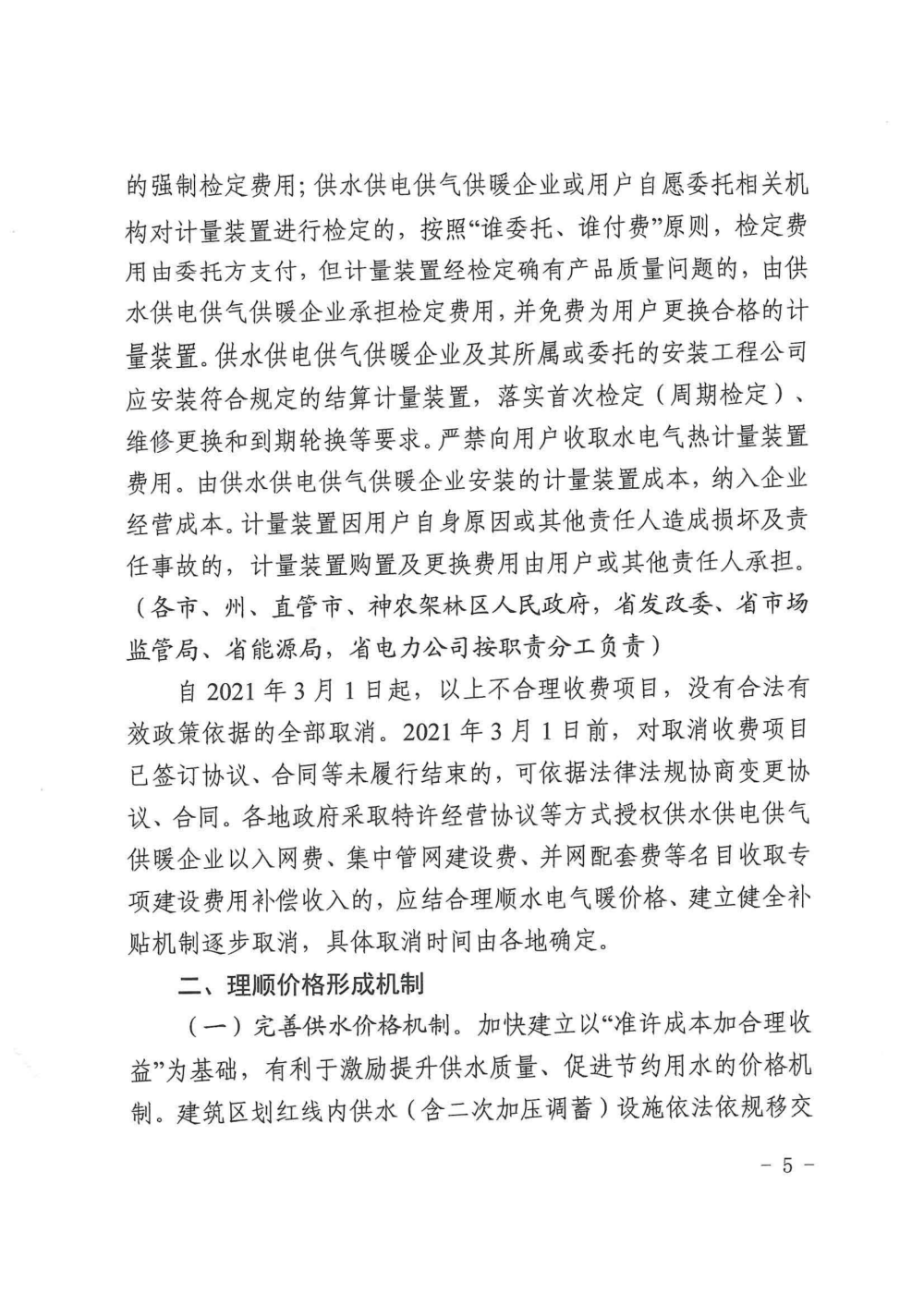 關于印發清理規范城鎮供水供電供氣供暖行業收費促進行業高質量發展實施意見的通知