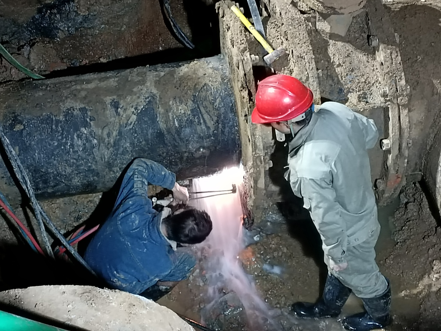 晚上10點(diǎn),更換工作正式開(kāi)始,關(guān)閘止水、排空積水、拆除舊蝶閥、安裝新蝶閥,流程看似簡(jiǎn)單,但每道工序都有嚴(yán)格的操作規(guī)程,需要現(xiàn)場(chǎng)每個(gè)人的付出和配合。時(shí)值倒春寒天氣,現(xiàn)場(chǎng)寒風(fēng)陣陣,工作坑內(nèi)更是寒氣逼人,但維修人員全然不顧,搶時(shí)間,爭(zhēng)速度,分工協(xié)作,輪流上陣,連續(xù)作戰(zhàn)。