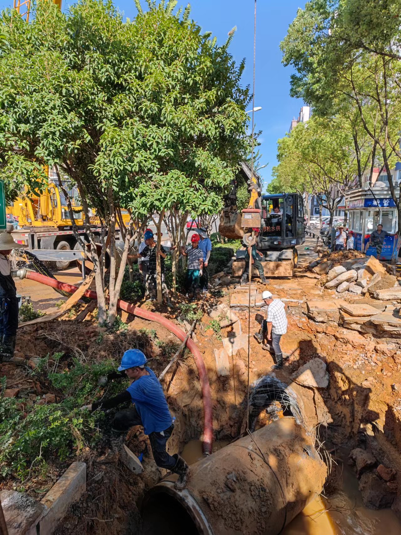 經過15個小時的連續奮戰,次日凌晨1點完成搶修任務,乾坤大道沿線實現通水。