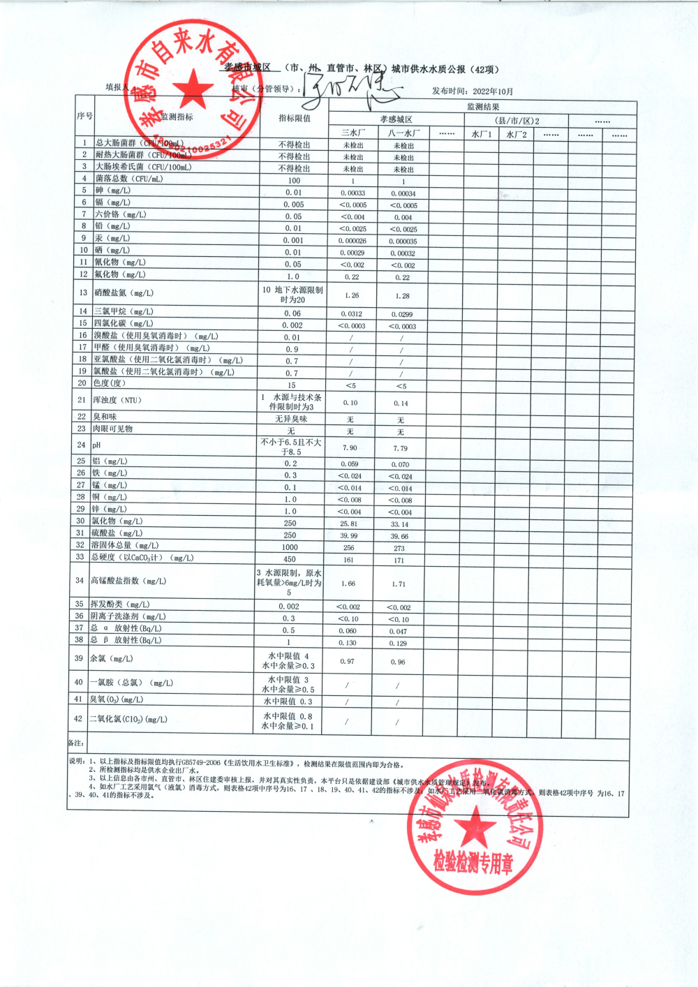 2022年10月水質報告